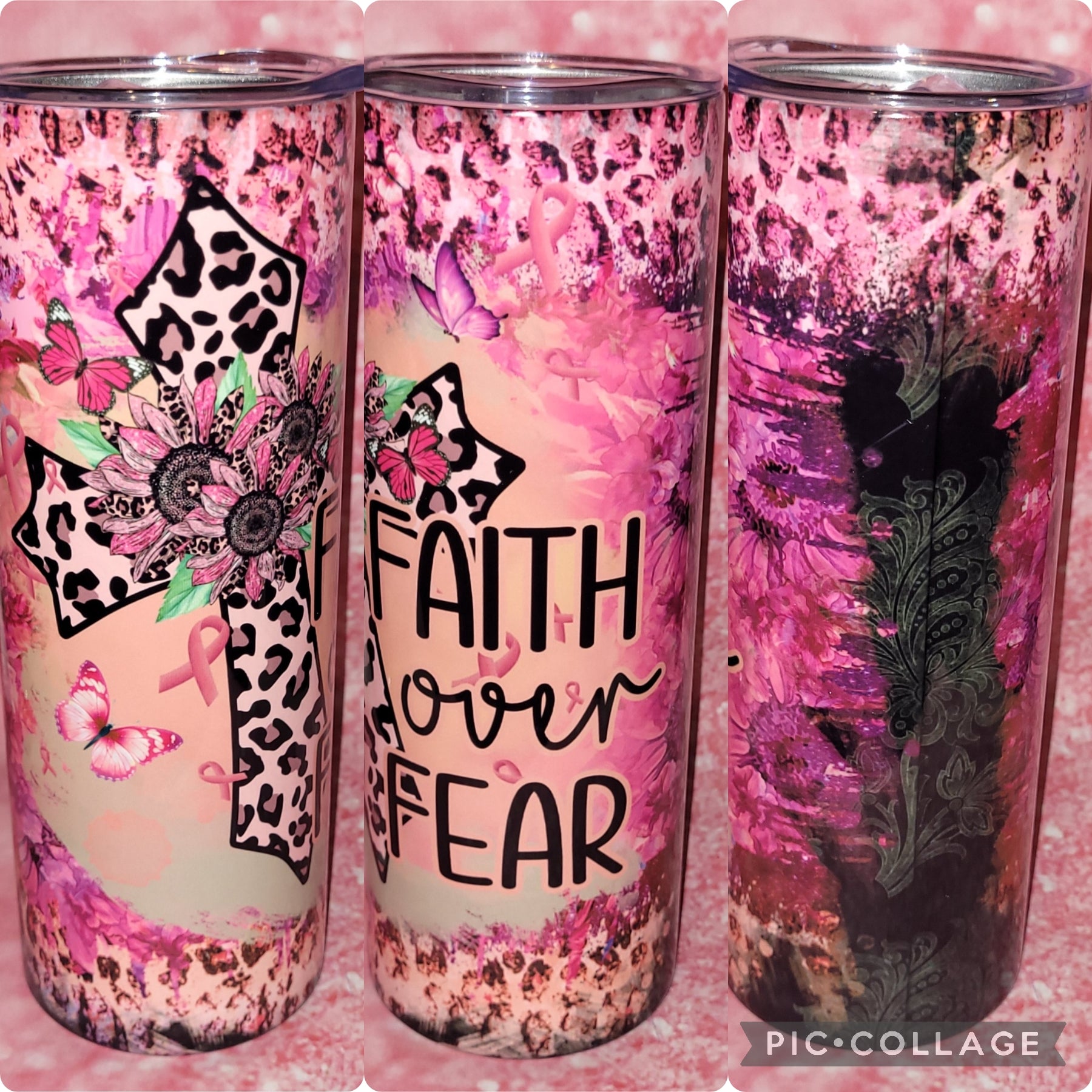 R30 Faith Over Fear Pink Ribbon Awareness 20oz Tumbler