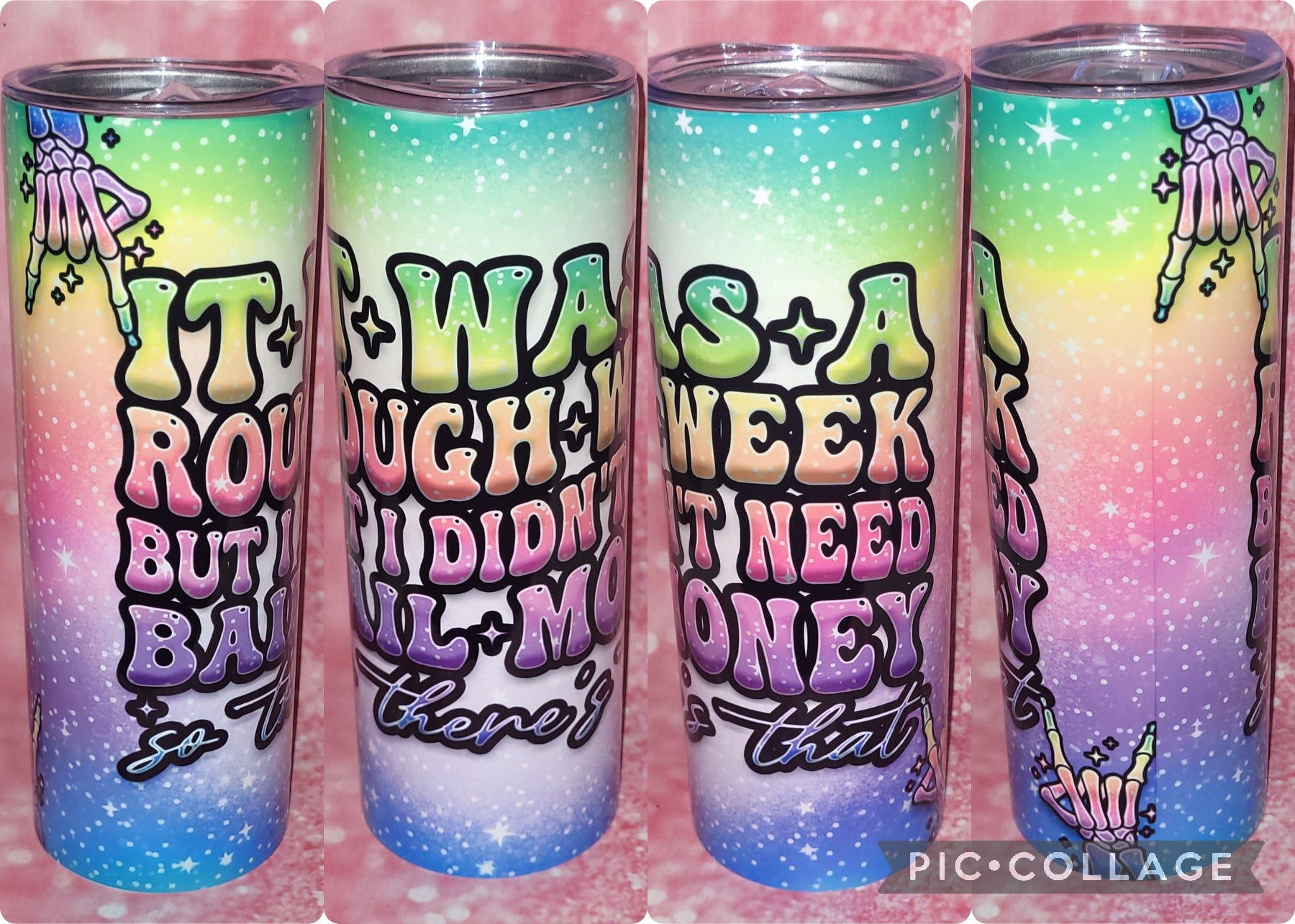 This 20oz Stainless Steel Tumbler will keep your drinks cold or hot for hours. Stylish and functional its sure to be a conversation starter. Hand wash only. Comes with sliding lid and plastic straw. Seam line may be visible