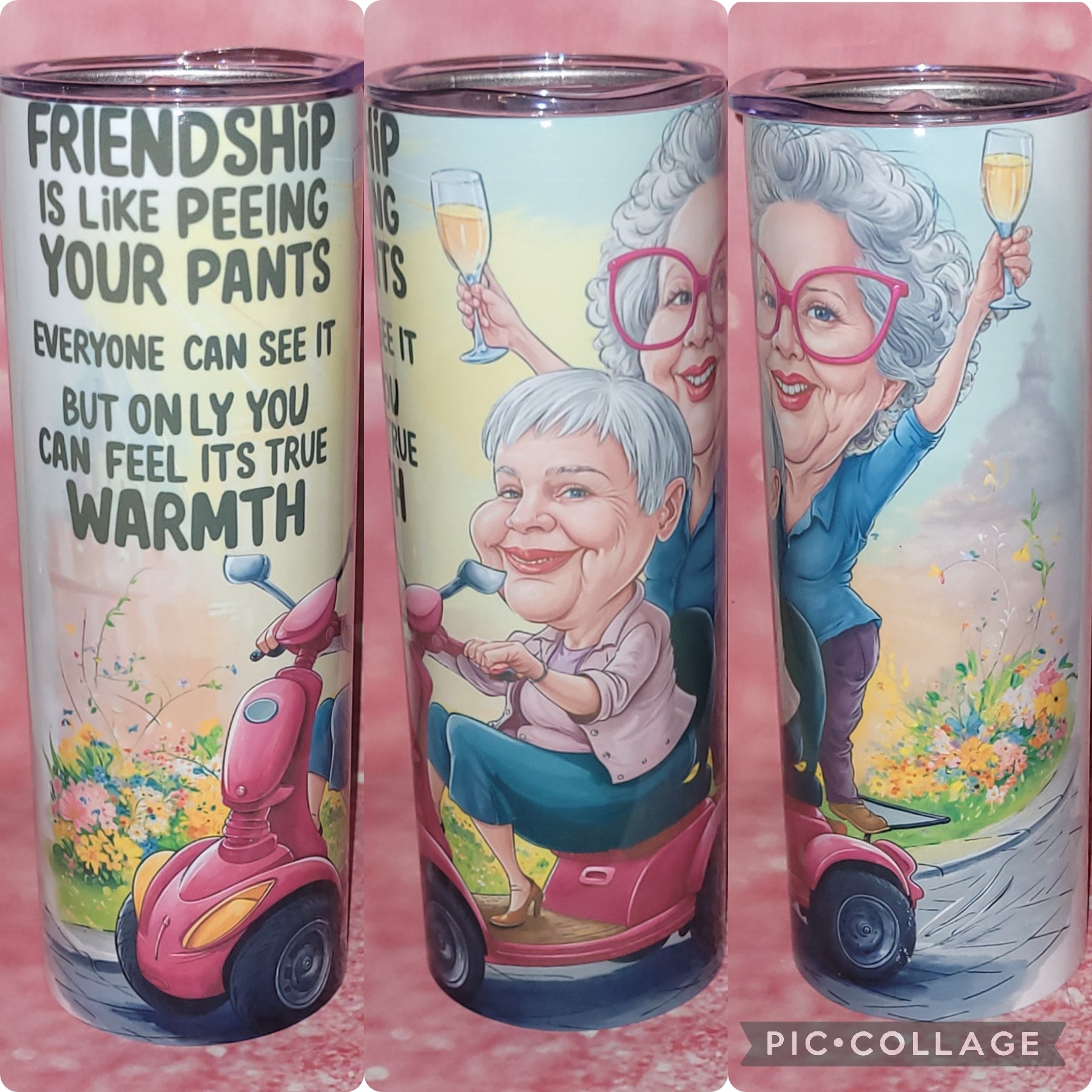 This 20oz Stainless Steel Tumbler will keep your drinks cold or hot for hours. Stylish and functional its sure to be a conversation starter. Hand wash only. Comes with sliding lid and plastic straw. Seam line may be visible