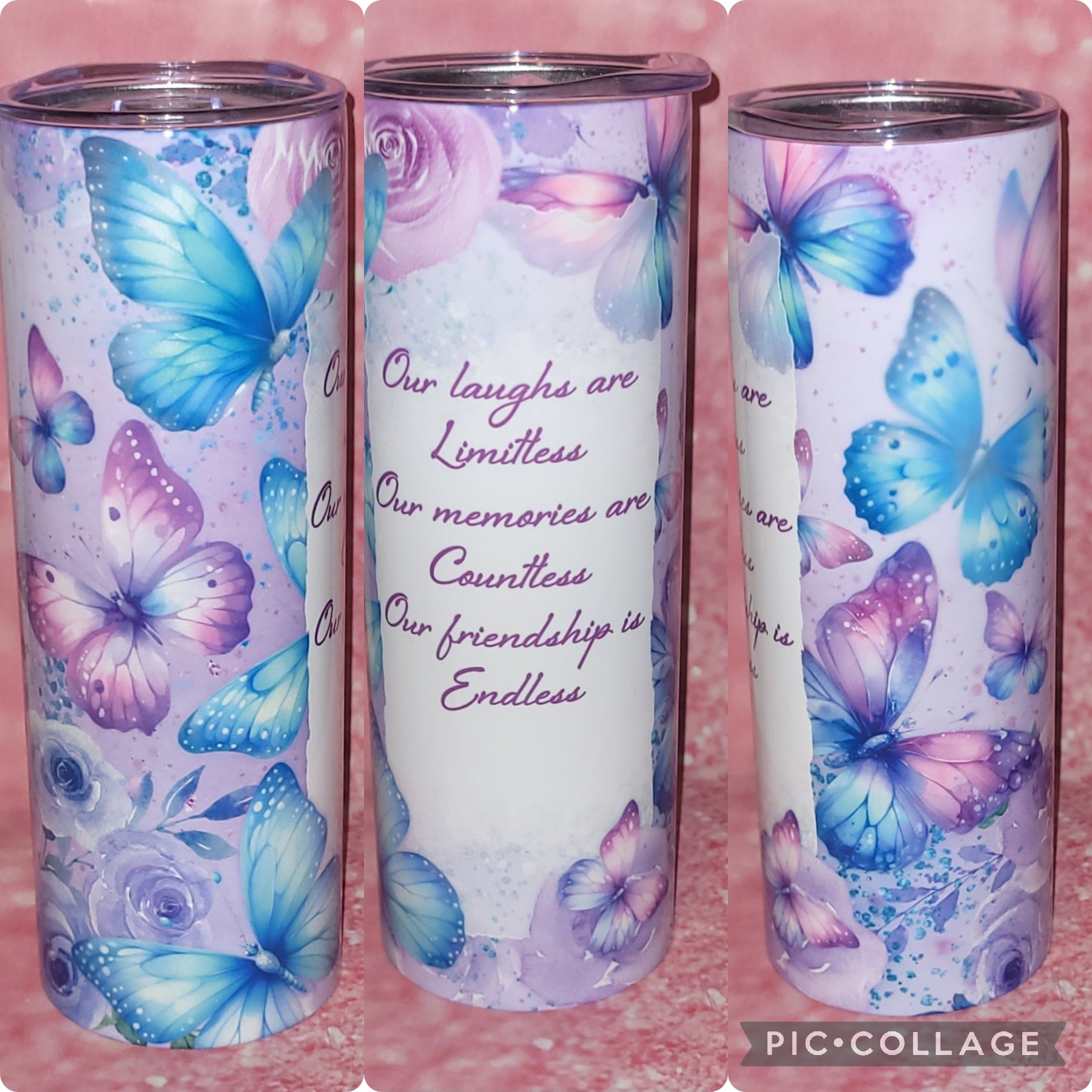 This 20oz Stainless Steel Tumbler will keep your drinks cold or hot for hours. Stylish and functional its sure to be a conversation starter. Hand wash only. Comes with sliding lid and plastic straw. Seam line may be visible