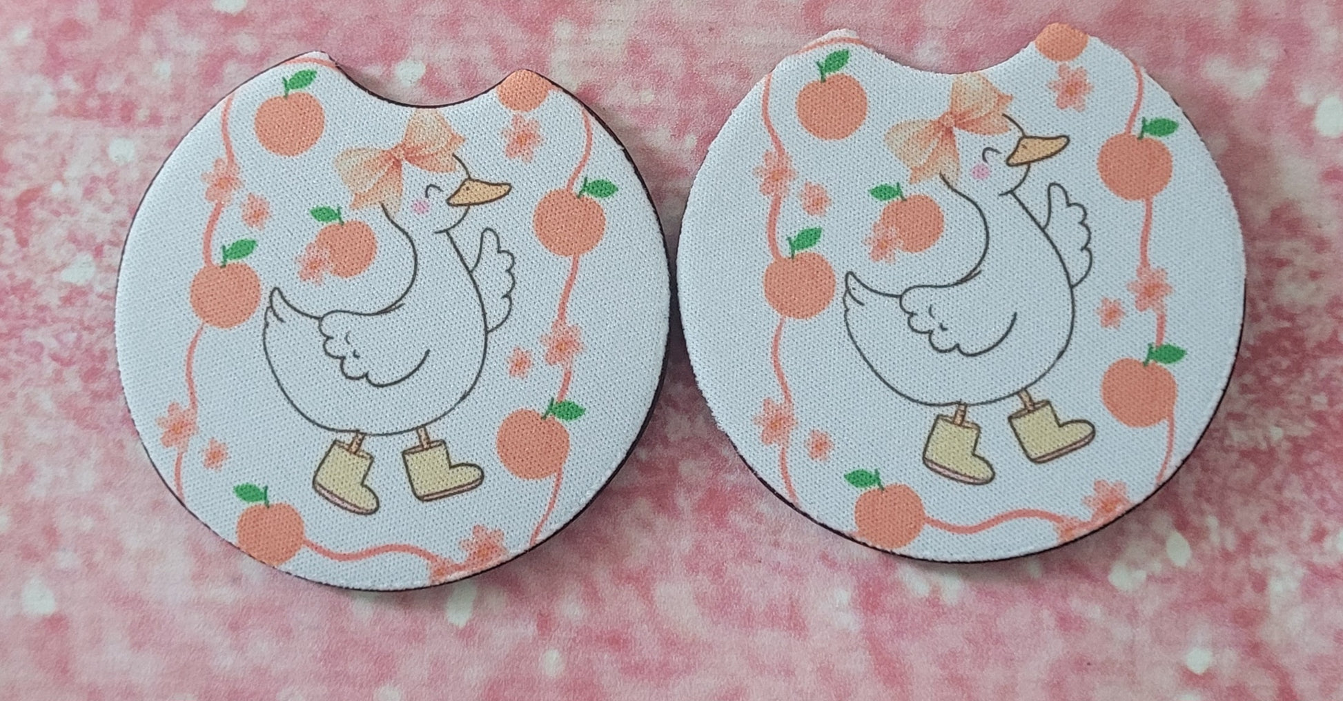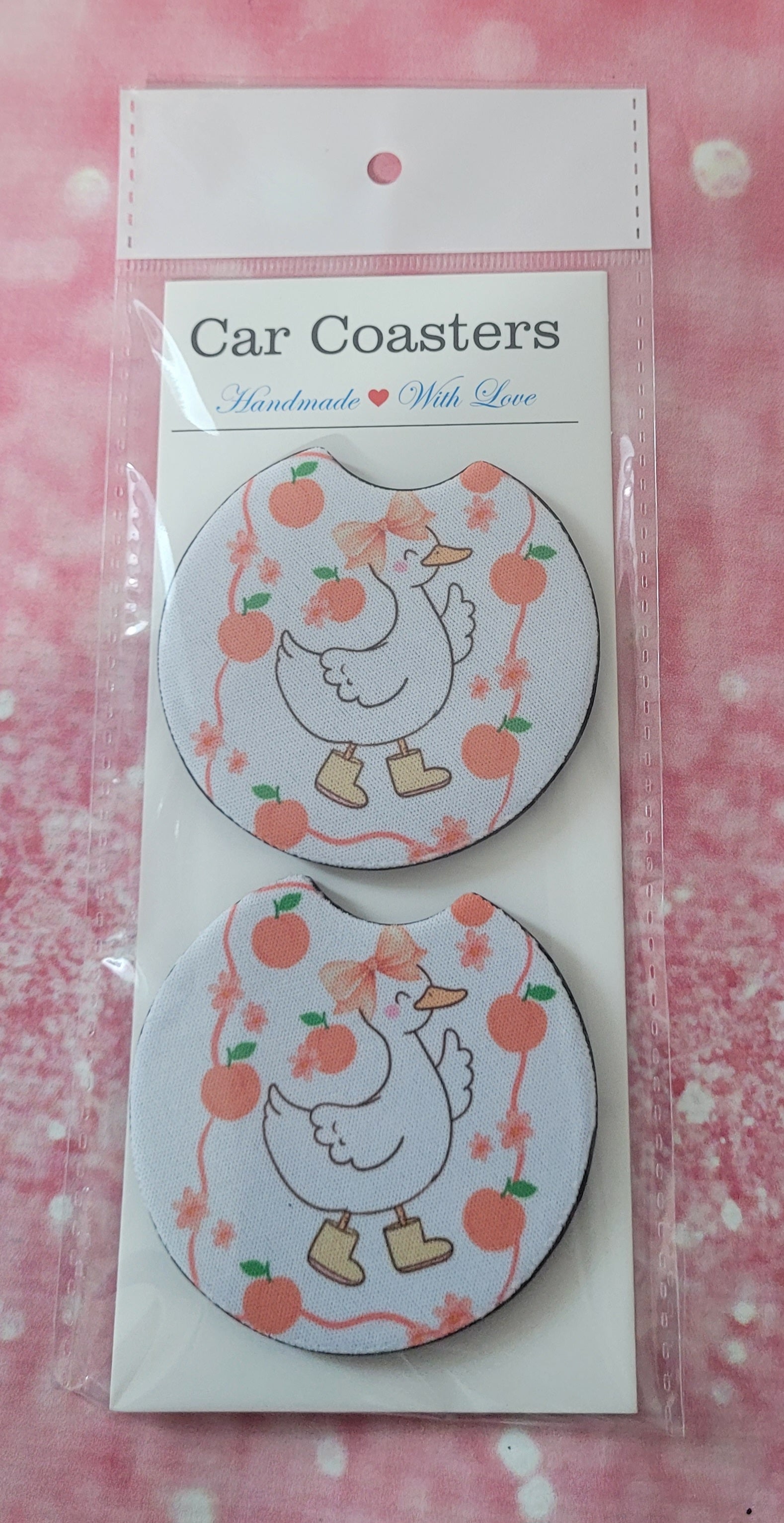 Silly Goose Peaches Coquette Bow Car Coaster Set